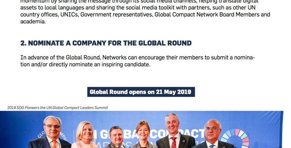 Since 2017, I have led the UN Global Compact SDG Pioneers programme and in 2019, I developed a playbook for Local Networks to run the programme at the country level. The programme run successfully in 15 countries.